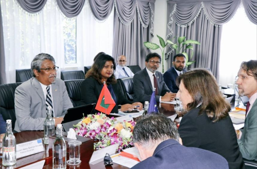 އާދިއްތަ ދުވަހު ބޭއްވި މި ބައްދަލުވުމަކީ ދިވެހިރާއްޖެއާއި އީޔޫއާއި ދެމެދު މަޝްވަރާތައް ބާއްވާނެ އާ ނިޒާމެއް ޤާއިމުކުރުމަށް ފޮރިން މިނިސްޓަރ ޢަބްދުﷲ ޝާހިދު މިދިޔަ އަހަރުގެ ޖޫން މަހު ބްރަސަލްސްއަށް ކުރެއްވި ދަތުރުފުޅުގައި އީޔޫގެ އޮފިޝަލުންނާއެކު ކުރެއްވި މަޝްވަރާތަކުގެ ނަތީޖާއެއްގެ ގޮތުން ޤާއިމުކުރެވުނު ނިޒުމްގެ ދަށުން ބޭއްވުނު ފުރަތަމަ ބައްދަލުވުމެވެ.