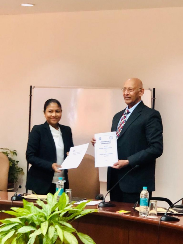 އިންޑީއާގެ ބޯޕާލްގައި ހުންނަ ނެޝަނަލް ޖުޑީޝަލް އެކަޑަމީގައި އެމް.އޯ.ޔޫގައިސޮއިކުރެއްވުމަށް ބޭއްވި ޚާއްޞަ ރަސްމިއްޔާތުގައި ކޮމިޝަނުގެ ފަރާތުން ސޮއި ކުރެއްވީ ކޮމިޝަނުގެ ރައީސް އަލްއުސްތާޛާ ޙިސާން ޙުސައިންއެވެ. އަދި އިންޑިޔާގެ ނެޝަނަލް ޖުޑީޝަލް އެކަޑަމީގެ ފަރާތުން އެމް.އޯ.ޔޫގައި ސޮއިކުރެއްވީ އެ އެކަޑަމީގެ ޑިރެކްޓަރ ޖަސްޓިސް ޖީ. ރަގުރާމްއެވެ.