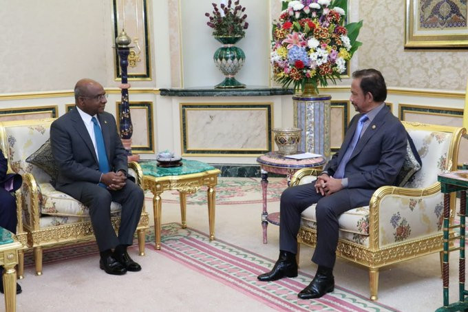 މިނިސްޓަރ އަބްދުﷲ ޝާހިދު ބްރޫނާއި ދާރުއްސަލާމަށް މިހަރު ކުރައްވަމުން ގެންދަވާ ދަތުރުފުޅުގައި އެގައުމުގެ ރަސްގެފާނު ސުލްތާން ހާޖީ ހަސަނުލް ބޮލިއާ މުއިއްޒައްދީން ވައްދައުލާގެ އަރިހަށް އިހްތިރާމްގެ ޒިޔާރަތެއް ކުރައްވައިފިއެވެ.