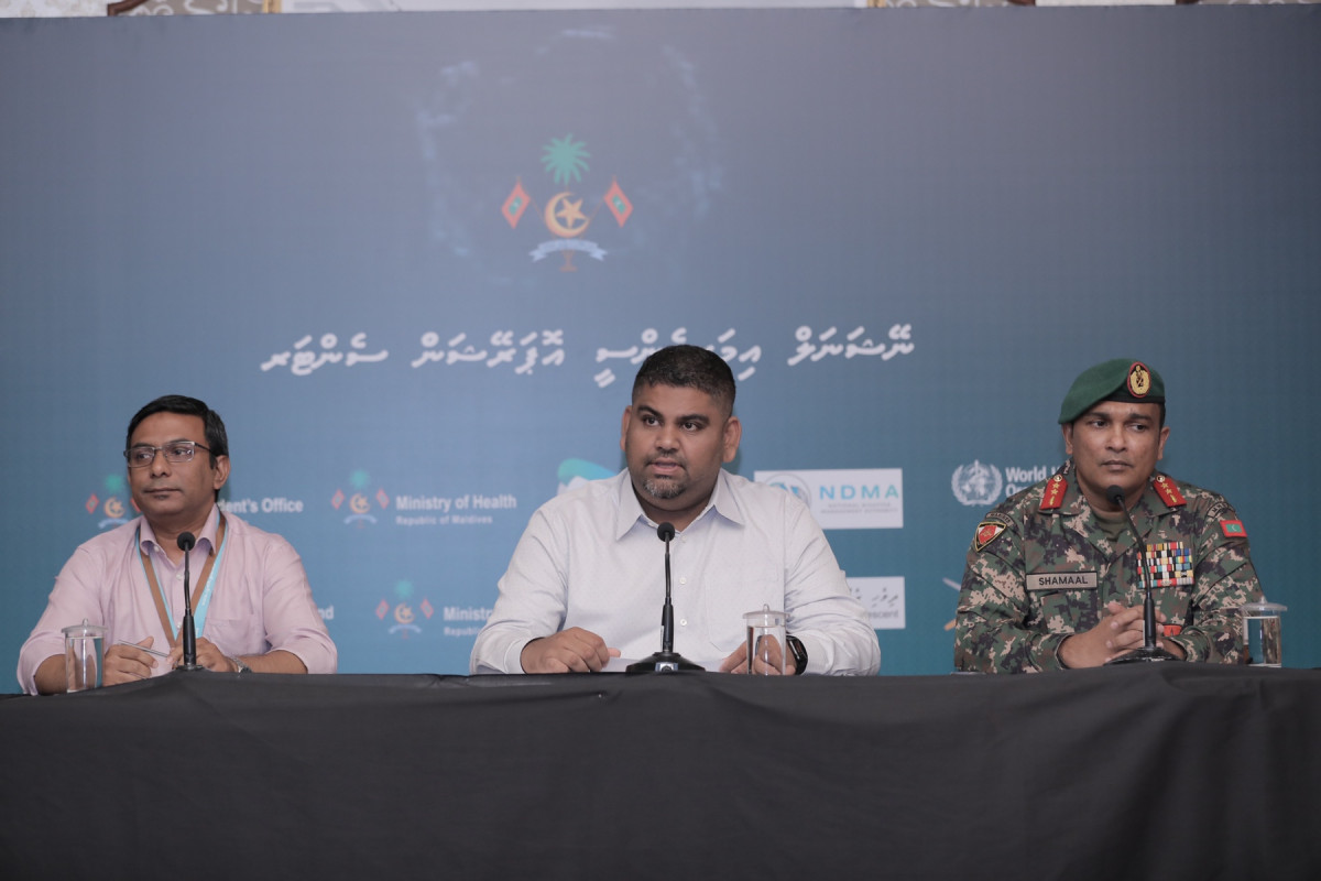 ކޮވިޑް-19 އާއި ބެހޭ މައުލޫމާތު ހިއްސާކުރުމަށް ބޭއްވި ނޫސްވެރިންގެ ބައްދަލުވުމުގެ ތެރެއިން | ރައީސް އޮފީސް