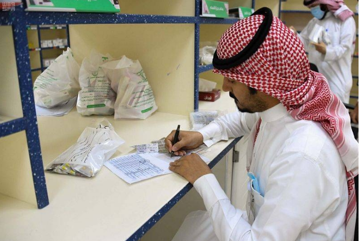ސައުދީގެ ސަރުކާރު ޕާމަސީއެއްގައި ފާމަސިސްޓަކު ބޭސްސިޓީ ޗެކްކުރަނީ