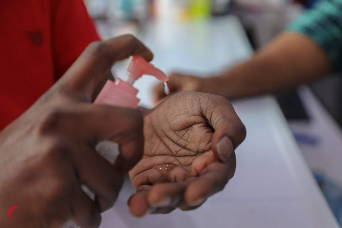 މީހަކު ސެނިޓައިޒަރ ފުޅިއަކުން އަތް ސާފުކުރަނީ