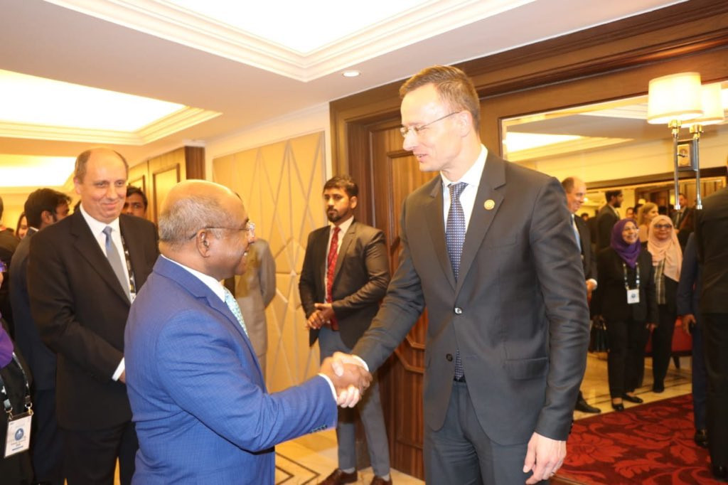 ހަންގޭރީގެ ޚާރިޖީ ވަޒީރު ޕީޓަރ ޒިއާޓޯ އާ ފޮރިން މިނިސްޓަރ އަބްދުﷲ ޝާހިދު ބައްދަލު ކުރައްވަނީ