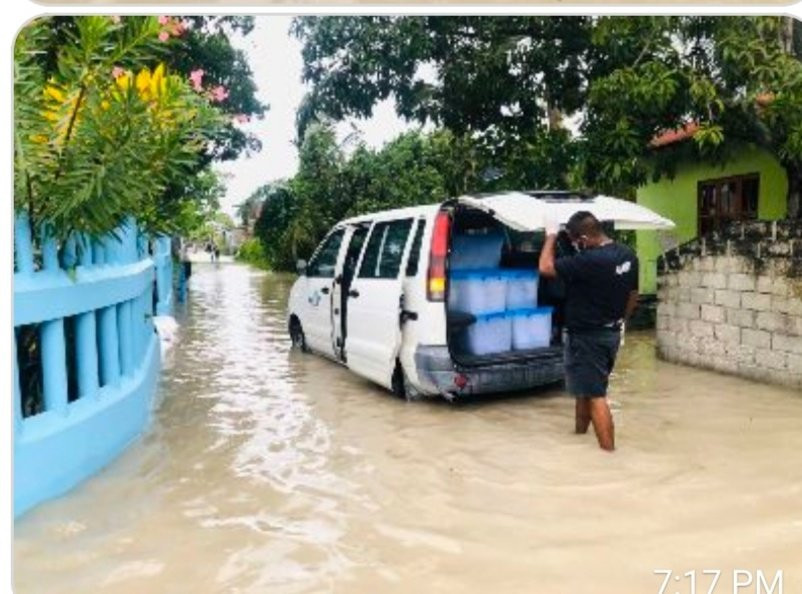 Heavy rain showers in Addu City have caused the streets to flood