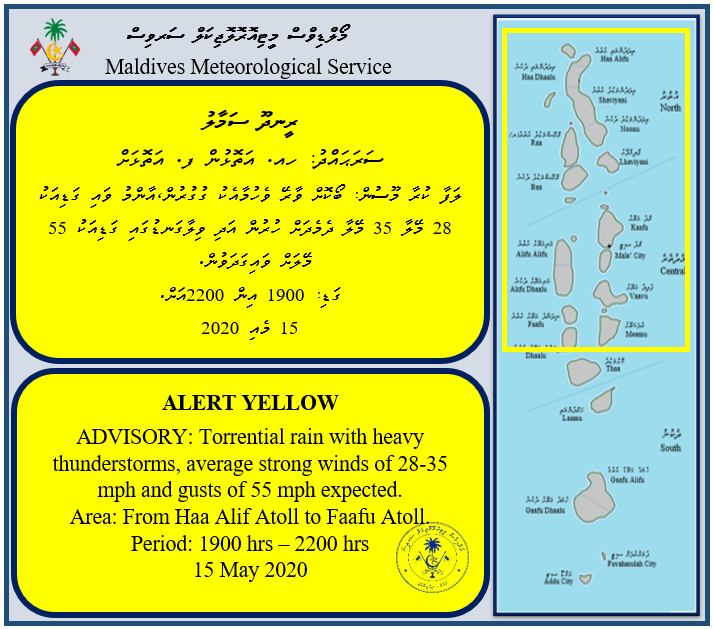 ހއ އަތޮޅުން ފެށިގެން ފ އަތޮޅަށް ޔެލޯ އެލަރޓް ނެރެފި އެވެ.