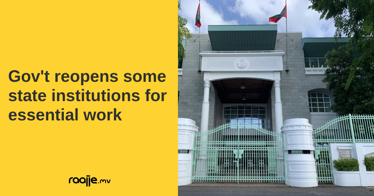 President Ibrahim Mohamed Solih decided to partially open government institutions from May 31 to June 11, to allow essential services.