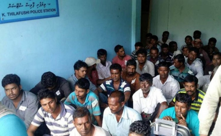 ކ. ތިލަފުށީ ޕޮލިސް ސްޓޭޝަނުގައި ތިބި ބިދޭސީ މަސައްކަތްތެރިންތަކެއް -- ފައިލް ފޮޓޯ