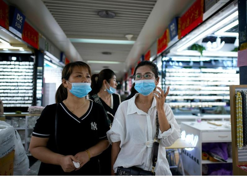 ޗައިނާގެ މާރުކޭޓެއްގައި ދެ މީހަކު މާސްކު އަޅައިގެން ހިނގާފައިދަނީ