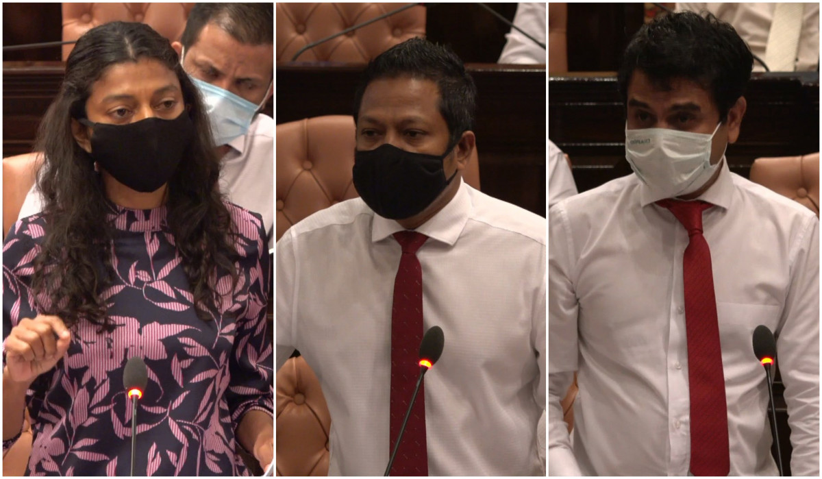 ބުދަ ދުވަހުގެ މަޖިލީހުގެ ޖަލްސާ: ހޯރަފުށި ދާއިރާގެ މެމްބަރު އަހުމަދު ސަލީމް، މާފަންނު އުތުރު ދާއިރާގެ މެމްބަރު އިމްތިޔާޒް ފަހުމީ، ގަލޮޅު އުތުރު ދާއިރާގެ މެމްބަރު އީވާ އަބްދުﷲ