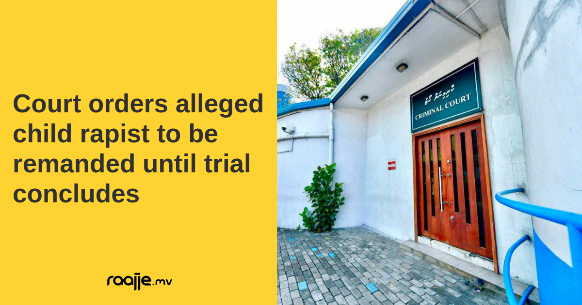 The order was issued on Saturday and comes following a request by the Commissioner of Police, Mohamed Hameed to detain the accused child rapist under article 30 of the Special Provisions Act to Deal with Child Sex Abuse Offenders, which states that “the Commissioner of Police may request the Prosecutor General to submit to court to obtain an order to detain a person under suspicion of committing an offence prescribed under this law into custody during investigation and trial stages, where the police feel the need to invoke the special procedures set out under this act.”
