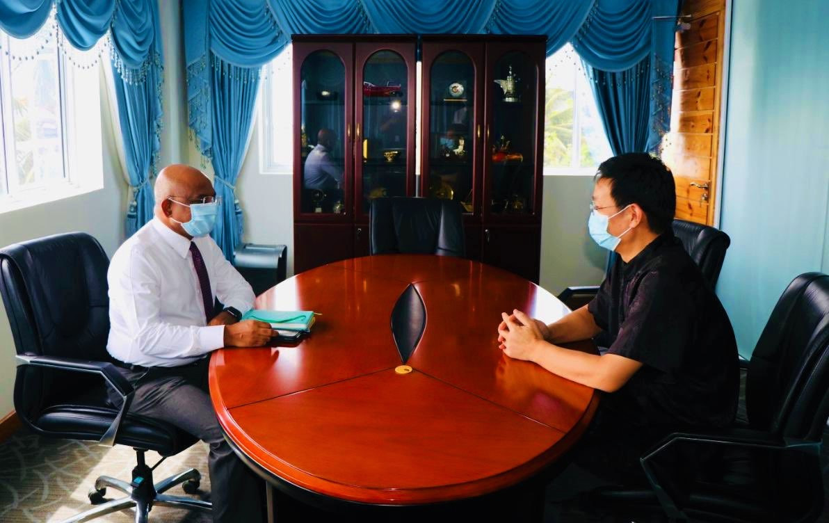ޗައިނާއިން ރާއްޖޭގައި ހިންގާ މަޝްރޫއުތަކާއި، އެގައުމުން ދެމުންދާ އެހީތެރިކަމާއި ގުޅޭގޮތުން ފޮރިން މިނިސްޓަރ އަބްދުﷲ ޝާހިދާއި ޗައިނާއިން ރާއްޖެއަށް ކަނޑައަޅުއްވާފައި ހުންނަވާ ސަފީރު ޒަންގ ލިޒޮންގާއި ދެބޭފުޅުން މަޝްވަރާ ކުރައްވައިފިއެވެ.