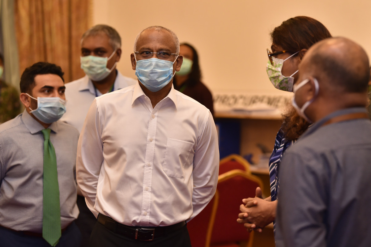 އޭގެ އިތުރުން ކޮވިޑް-19އާ ދެކޮޅަށް ކުރާ މަސައްކަތަކީ މިހާތަނަށް ރާއްޖޭގައި އެންމެ ގިނަ މުއައްސަސާތަކެއް ގުޅިގެން ކުރި މިފަދަ މަސައްކަތްކަން ފާހަގަކުރައްވައި، މިގޮތަށް މި މަސައްކަތްކުރެވުނީ އެންއީއޯސީ ގައި މަސައްކަތްކުރެއްވި ހުރިހާ ބޭފުޅުންގެ އެހީތެރިކަމާއި އަދި ކަމާގުޅޭ އިސްވެރިން ކުރެއްވެވި ފުރިހަމަ މަސައްކަތުންކަން ފާހަގަކުރައްވައި ރައީސް ސޯލިހު ވަނީ ޝުކުރު އަދާކުރެއްވާފައެވެ.