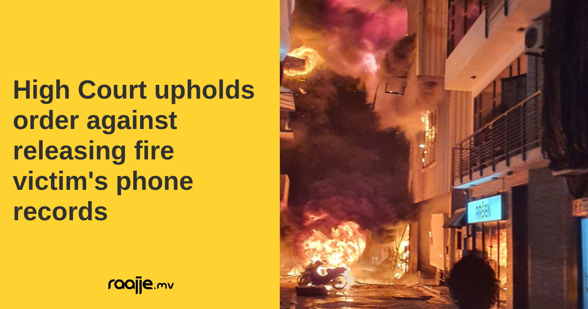 High Court has upheld the lower court’s order against releasing mobile phone records of Aishath Shauna, who passed away in a fire in the capital in September 2019.