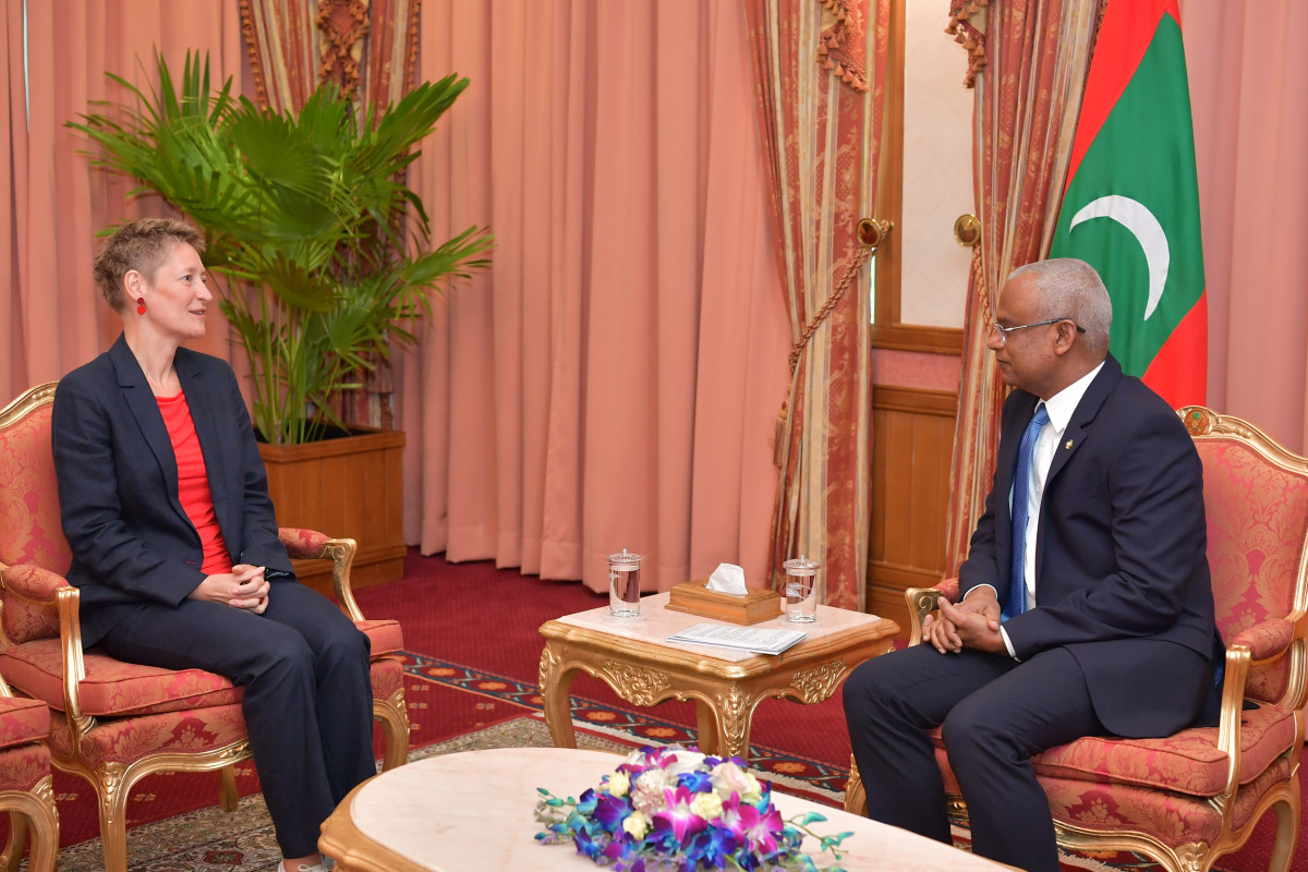 ރައީސް އިބްރާހިމް މުހައްމަދު ސޯލިހު އަރިހުގައި އިނގިރޭސި ސަފީރު ކެރޮން ރޯސްލާ