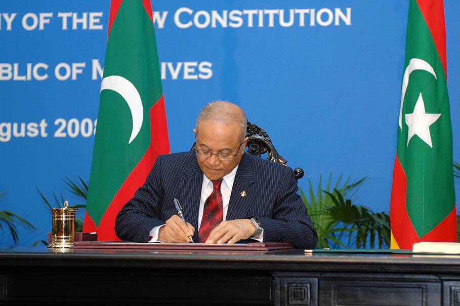 އައު ޤާނޫނު އަސާސީ ތަސްދީޤްކުރެއްވުމަށް 7 އޮގަސްޓް 2008 ގައި ދަރުބާރުގޭގައި ބޭއްވި ރަސްމިއްޔާތުގެ ތެރެއިން