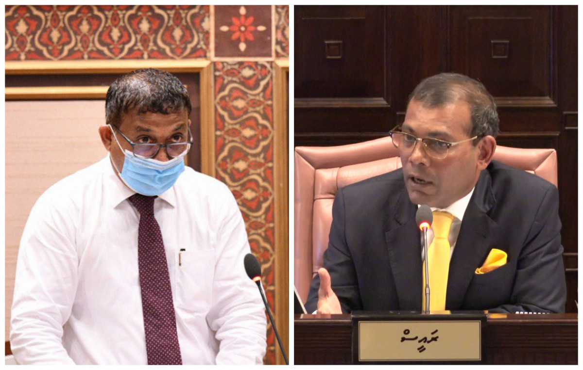 ރައްޔިތުންގެ މަޖިލީހުގެ ރައީސް މުހައްމަދު ނަޝީދު އަދި މިނިސްޓަރ އޮފް ނޭޝަނަލް ޕްލޭނިންގ، ހައުސިންގ އެންޑް އިންފްރާސްޓްރަކްޗަރ މުޙައްމަދު އަސްލަމް