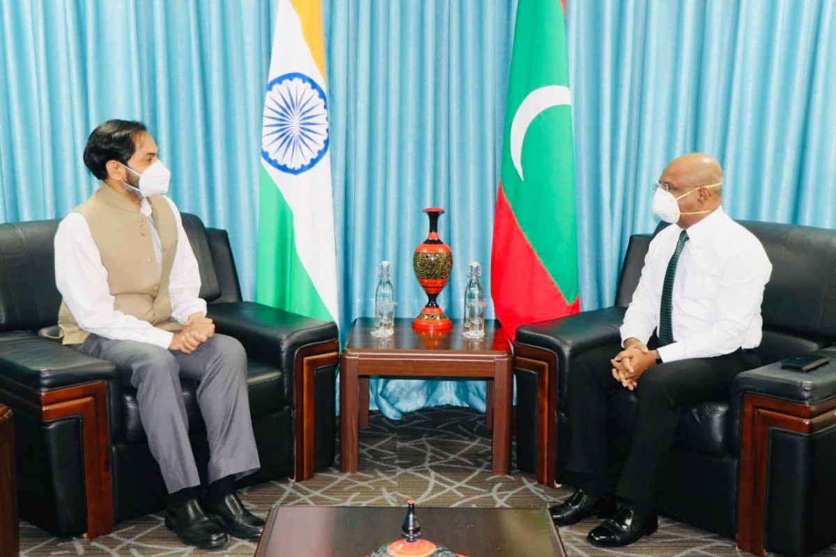 ފޮރިން މިނިސްޓަރު ޝާހިދު އާ އިންޑިއާ ސަފީރު ސަންޖޭ ސުދީރް