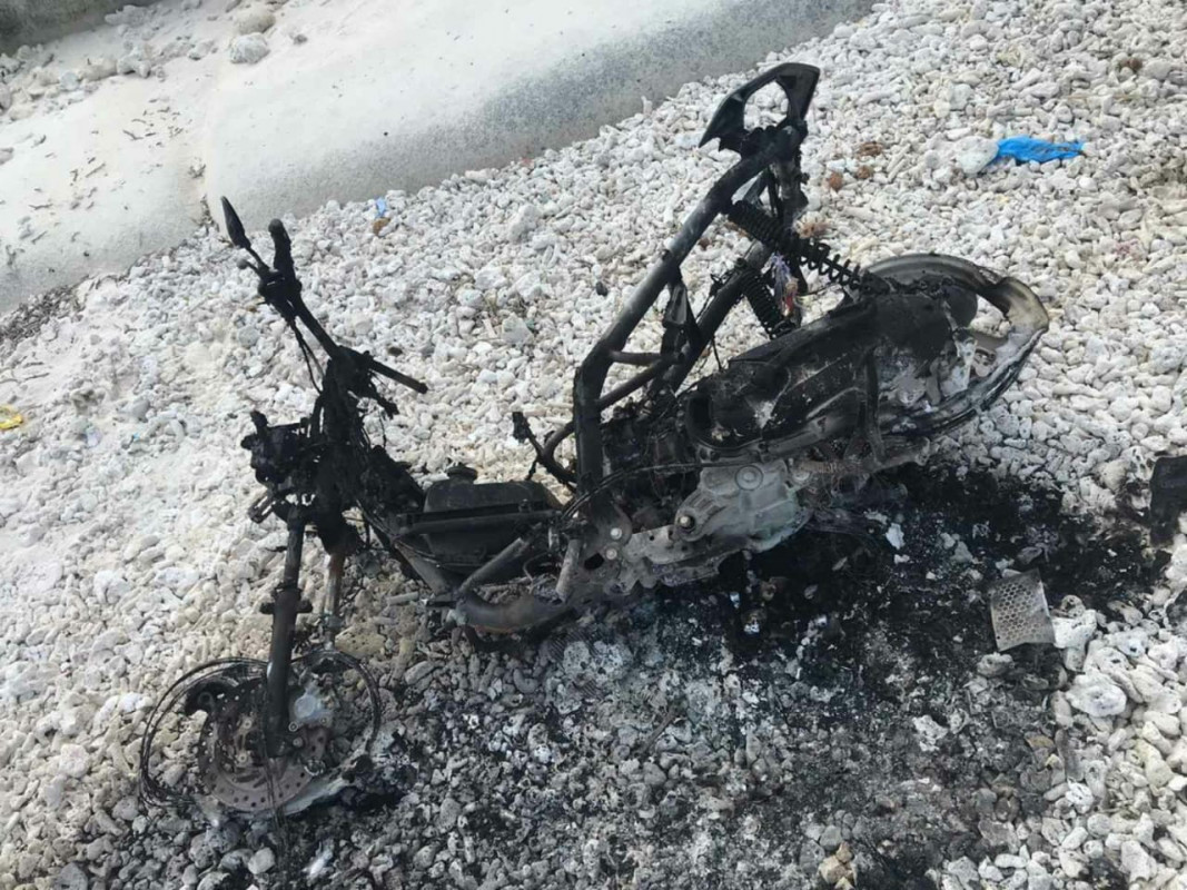 އޯގަސްޓް މަހުގެ 15 ވަނަ ދުވަހުގެ 08:55 ހާއިރު ސައިކަލުގައި ރޯކޮށްލާފައިވާކަމުގެ މައުލޫމާތު ފުލުހުންނަށް ލިބިފައިވާއިރު ސައިކަލު ބޭނުން ނުކުރެވޭ ވަރަށް އަނދާފައިވާކަމަށް ފުލުހުން ވަނީ ބުނެފައެވެ.