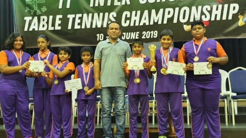 ޣިޔާސުއްދީން އިންޓަނޭޝަނަލް ސްކޫލުގެ ދަރިވަރުން ޓީޓީ މުބާރާތެއްގައި ހޯދި ކާމިޔާބު ފާހަގަކުރާއިރު، ތޯހާ އެ ކުދިންނާއެކު