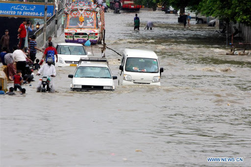 ޕާކިސްތާނުގެ މީޑިއާ ތަކުން ރިޕޯޓް ކޮށްފައިވާ ގޮތުގައި ކަރާޗީގެ މަގުތަކުގައި ފެން ބޮޑުވެ ކޯރު ހެދިފައިވާއިރު، ބައެއް ގެތަށް ވަނީ ފެނު އަޑީގައެވެ.