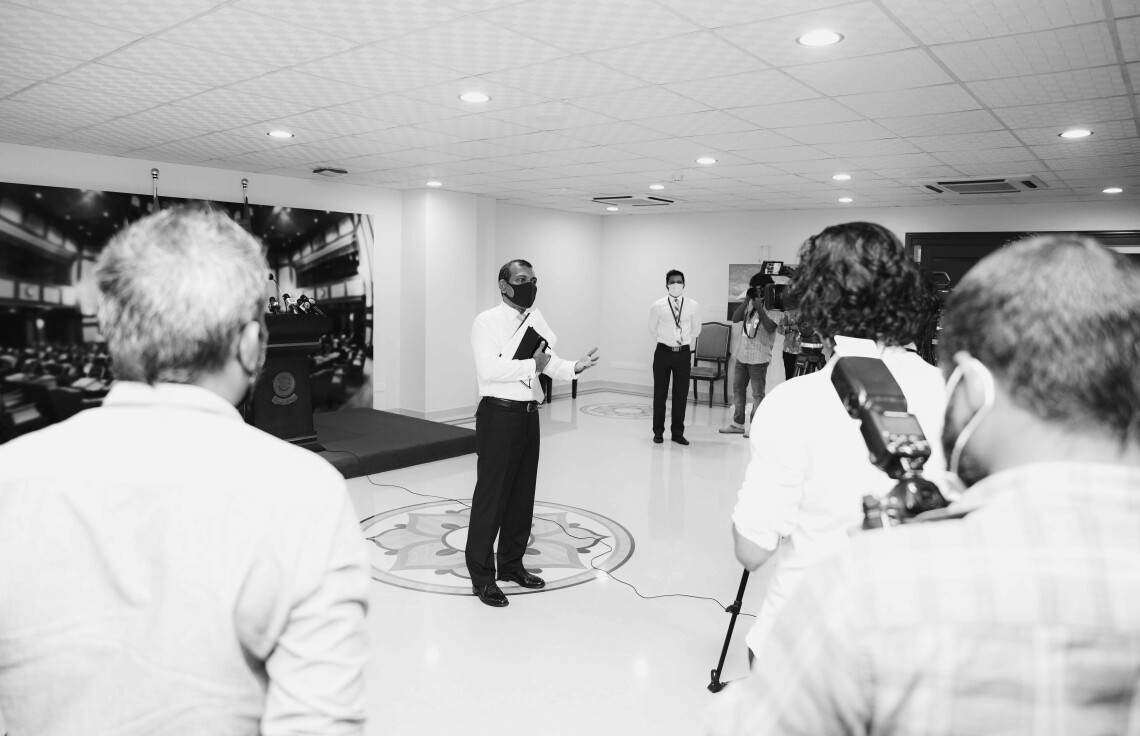 މަޖިލީހުގެ ރައީސް، ރައީސް ނަޝީދު ޕްރެސްއެއް ނިންމާލެއްވުމަށްފަހު، ނޫސްވެރިންނާ ވާހަކަފުޅު ދައްކަވާލައްވަނީ
