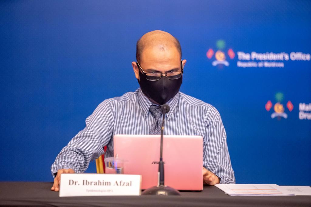 ކޮވިޑް-19 އާ ގުޅޭ އެންމެ ފަހުގެ މައުލޫމާތު ދިނުމަށް ހޯމަ ދުވަހުގެރޭ ދަރުބާރުގޭގައި ބޭއްވި ނިއުސް ބްރީފިން ގައި އެޗްޕީއޭގެ އެޕިޑެމިއޮލޮޖިސްޓް ޑރ. އިބްރާހިމް އަފްޒަލް ވަނީ ކޮވިޑުގެ އެންމެ ފަހުގެ ތަފާސް ހިސާބުތަކުގެ ޕްރެޒެންޓޭޝަނެއް ހުށައަޅާފައެވެ.