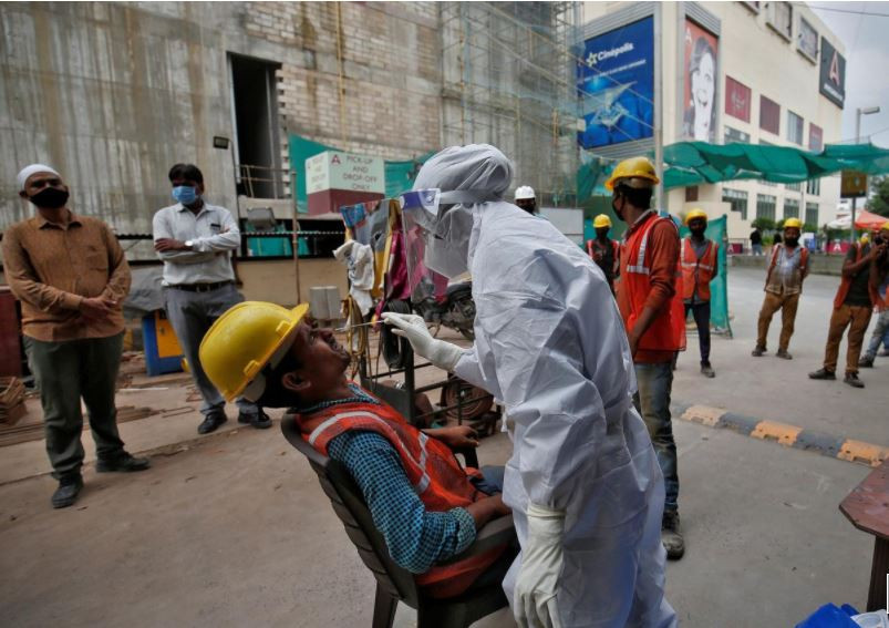 އިންޑިޔާގެ ކޮންސްޓްރަކްޝަން ސައިޓެއްގައި މަސައްކަތްކުރާ މީހުން ކޮވިޑް-19 އަށް ޓެސްޓް ކުރަނީ