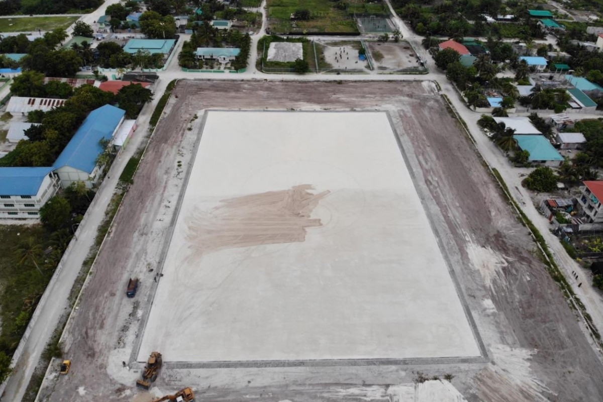 އދ. މާމިގިލީގައި ސަރުކާރުން އަޅާ ފެންވަރު ރަނގަޅު ޓާފް ފުޓްބޯޅަ ދަނޑު: ބިން އެއްވަަރުކުރުމުގެ މަސައްކަތް ވަނީ ނިމިފައި