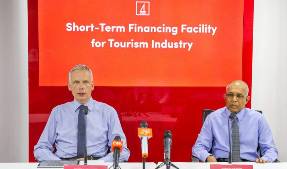 ބޭންކުން ރައްޖޭގެ އިގްތިސާދަށް އެހީތެރިކަން ފޯރުކޮށްދިނުމަށް އަޅާފައިވާ ފިޔަވަޅުތަކާ ބެހޭ ގޮތުން ބައެއް މީޑިއާ ތަކާއެކު ޒޫމް މެދުވެރިކޮށް ބޭއްވި ބައްދަލުވުމެއްގައި ވާހަކަ ދައްކަވަމުން ބޭންކް އޮފް މޯލްޑިވްސް ގެ ސީއީއޯ އަދި މެނޭޖިންގ ޑައިރެކްޓަރ ޓިމް ސޯޔަރ ވިދާޅުވީ ޓްއަރިޒަމް ޞިނާޢަތަށް ދިމާވެދާނެ ނުރައްކަލުން އަރައިގަތުމަށް ބޭންކުން އިސްނަގައި ވަނީ ކުރު މުއްދަތުގެ ފެސިލިޓީއެއް ތަޢާރަފް ކޮށްފައި ކަމަށެވެ.