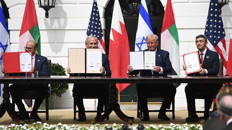 ޔޫއޭއީ އާއި ބަހުރައިނުން އިސްރާއިލާއެކު ގުޅުން ބަދަހީ ކުރުމުގެ އެއްބަސްވުމުގައި ސޮއިކުރުމުގެ ރަސްމިއްޔާތުގައި