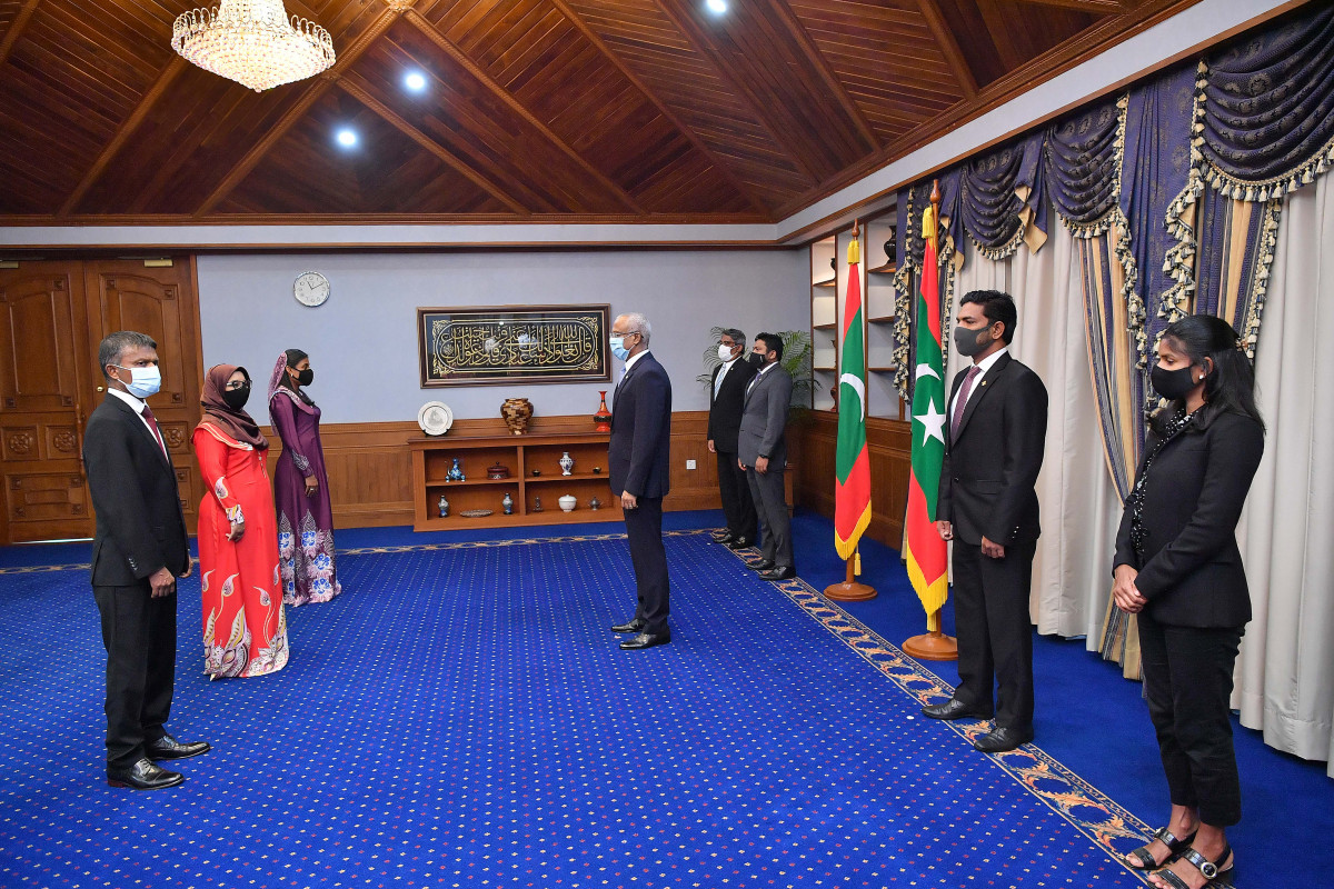 ބުދަ ދުވަހުގެ މެންދުރު، ރައީސް އޮފީހުގަ ބޭއްވި ރަސްމިއްޔާތެއްގައި ވަނީ އިންޑިއާ، އެކުވެރި ޢަރަބި ޢިމާރާތް، އަދި ޕާކިސްތާނަށް ދިވެހިރާއްޖެއިން ކަނޑައަޅާފައި ހުންނަވާ ސަފީރުކަމުގެ މަޤާމުތަކަށް ތިން ބޭފުޅަކު ޢައްޔަނުކުރައްވާ، މަގާމުގެ ފަތްކޮޅު އަރުވާފައެވެ.