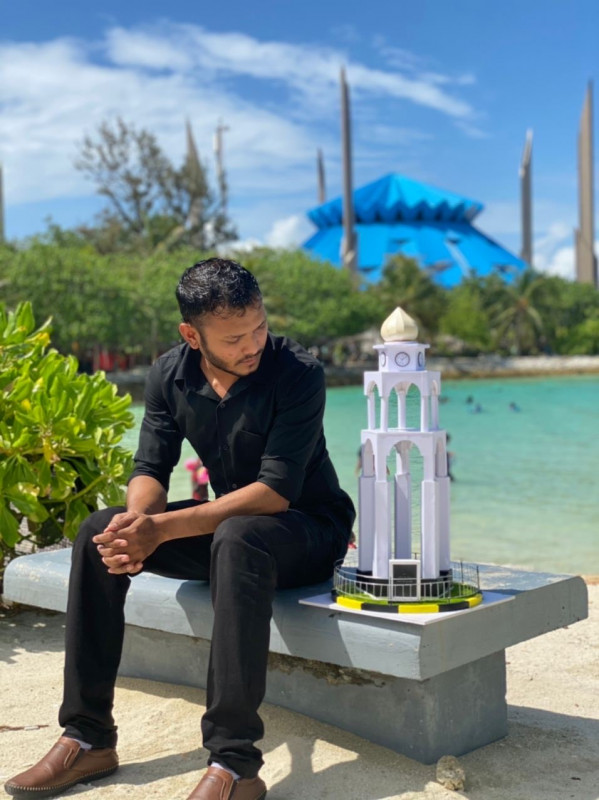ޝާފިއު އޭނާ ތައްޔާރުކޮށްފައިވާ މާލޭ ގަޑީބުރުގެ މޮޑެލްއާއި އެކު