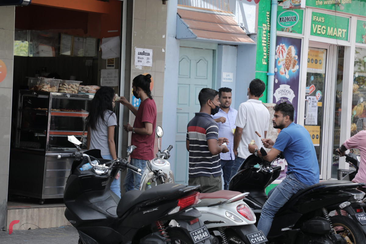 މާލޭ މަގެއްމަތީގައި ބަޔަކު ކޮފީއެއް ބޯން މަޑުކޮށްލައިގެން