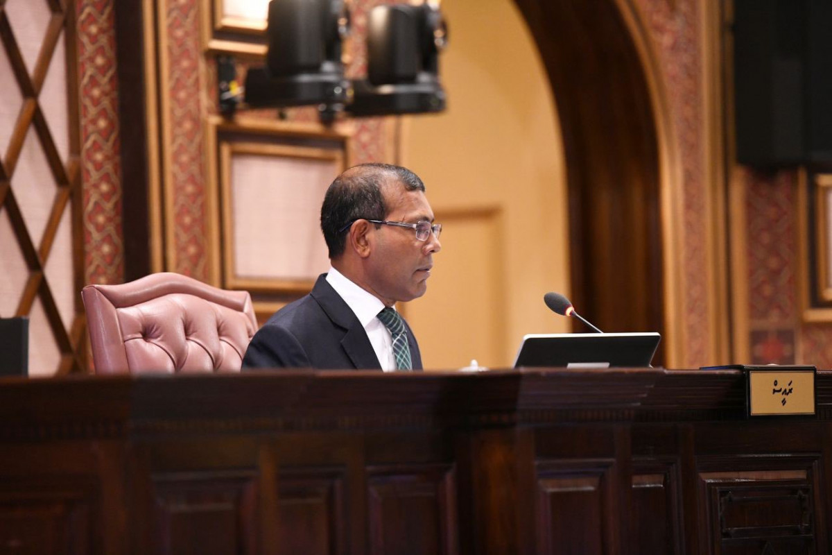 ރައްޔިތުންގެ މަޖިލީހުގެ ޖަލްސާއެއްގައި ރައީސް ނަޝީދު ވާހަކަދައްކަވަނީ