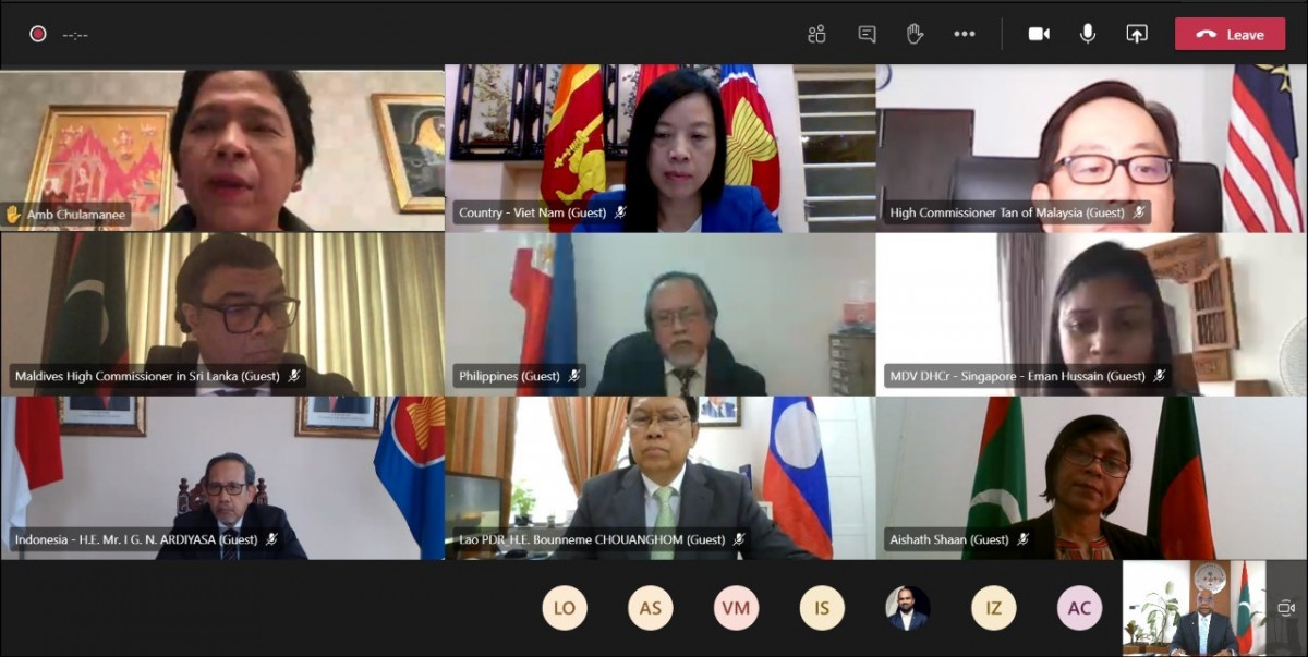 މިނިސްޓަރ އޮފް ފޮރިން އެފެއަރޒް އަބްދުﷲ ޝާހިދު، އެސޯސިއޭޝަން އޮފް ސައުތު އީސްޓް އޭޝިއަން ނޭޝަންސް (އާސިއާން)ގެ ބައެއް ޤައުމުތަކުން ރާއްޖެއަށް ކަނޑައަޅާފައިވާ ސަފީރުންނާއި މިއަދު ވަރޗުއަލްކޮށް ބައްދަލު ކުރައްވައިފިއެވެ.