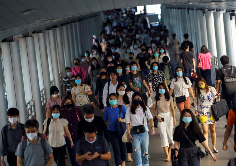 ބެންގކޮކްގެ ޓްރެއިން ސްޓޭޝަނެއްގައި މީހުން މާސްކު އަޅައިގެން