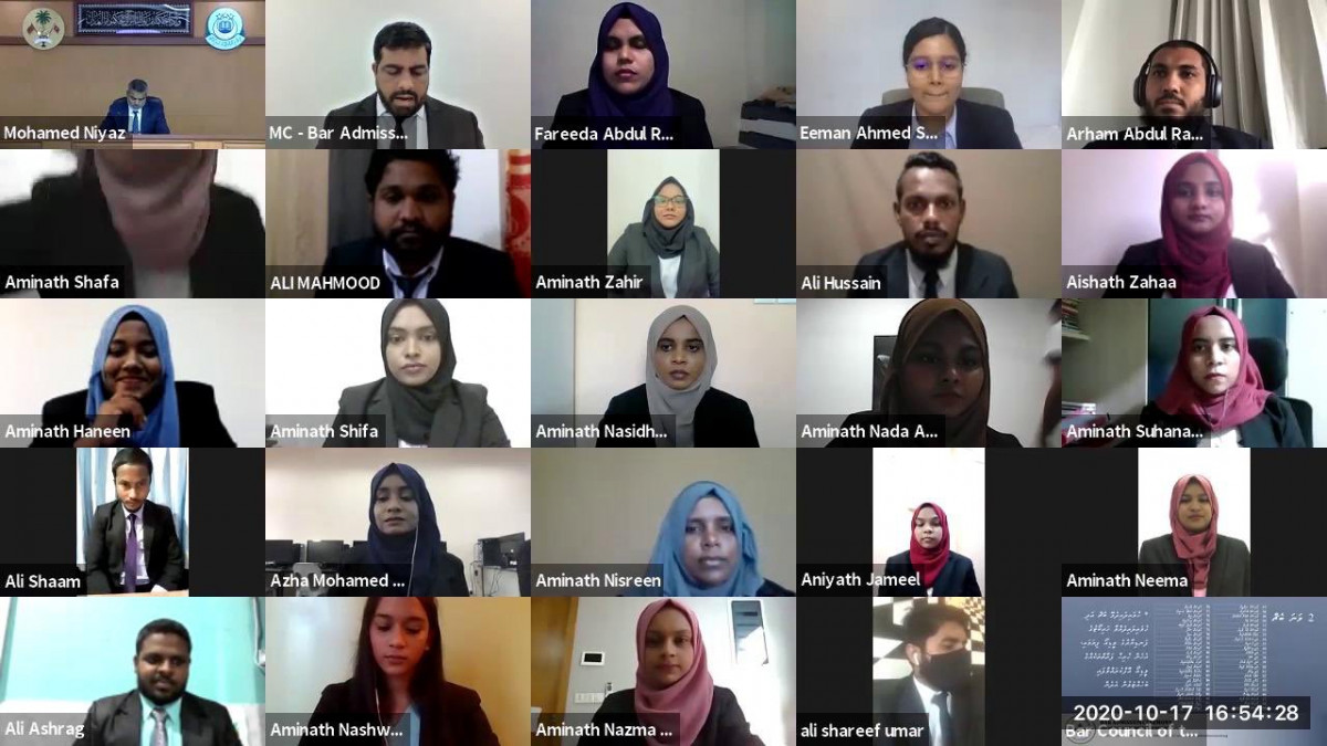 ހޮނިހިރު ދުވަހުގެރޭ ވާރޗުއަލްކޮށް ކުރިއަށް ގެންދިޔަ ރަސްމިއްޔާތެއްގައި މި ވަކީލުންނަށް ވަކީލުކަމުގެ ހުވާ ލައިދެއްވީ ހައި ކޯޓުގެ ފަނޑިޔާރު މުހައްމަދު ނިޔާޒެވެ. އެގޮތުން އަލަށް ހުވާ ކުރެއްވި 227 ވަކީލުންނަށް ދިވެހިރާއްޖޭގެ ބަރ ކައުންސިލުން ވަނީ މަރުޙަބާ ކިޔާފައެވެ.