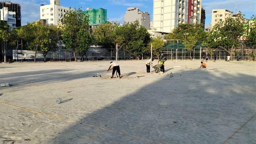 މާފަންނު ސްޓޭޑިއަމުގައި އަޅާ ވޮލީބޯޅަ ދެ ކޯޓުގެ މަސައްކަތް ކުރިއަށްދަނީ