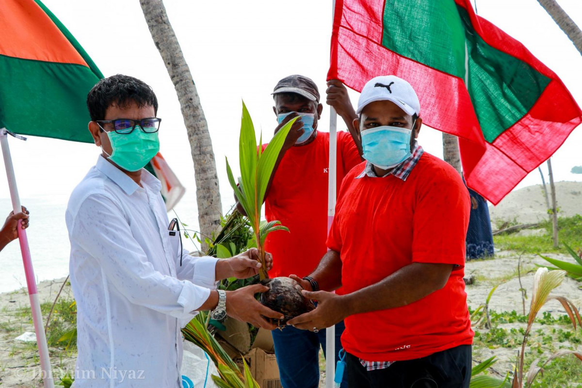 ހޯރަފުށި އެއަރޕޯޓުގައި ގަސް އިންދުމަށް ކެލާ ޔޫތް ފޯރަމްއިން ގަސް ހަދިޔާ ކުރަނީ
