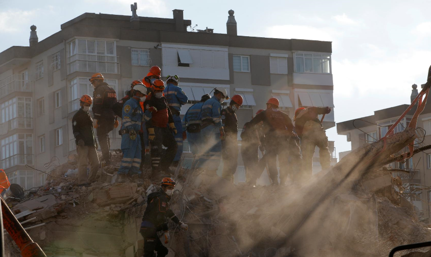 ތުރުކީއަށް އައި ބިންހެލުމުގައި ވެއްޓިފައިވާ އިމާރާތްތަކުގެ ތެރޭގައި ތާށިވެފައިވާ މީހުން ސަލާމަތް ކުރުމަށް މަސައްކަތް ކުރަނީ