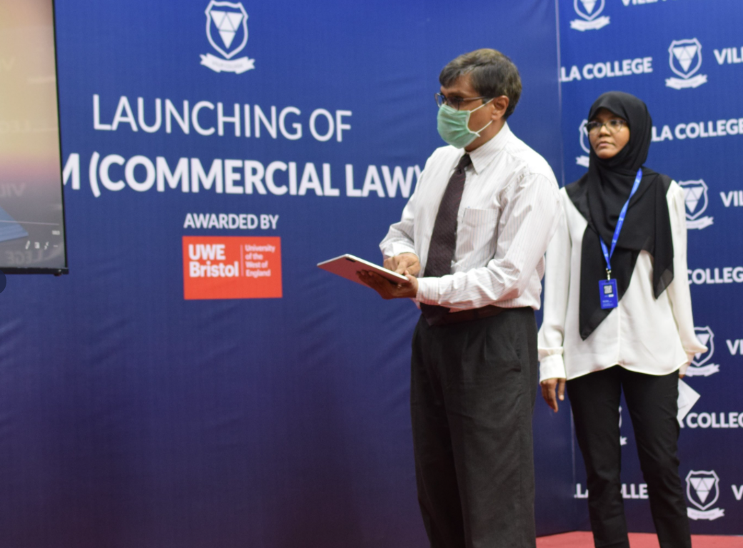 އިނގިރޭސި ވިލާތުގެ ޔުނިވަރސިޓީ އޮފް ދި ވެސްޓް އިންގްލެންޑުގެ ކޮމާޝަލް ލޯ ގެ މާސްޓަރސް ޑިގްރީ ކޯހެއް ވިލާ ކޮލެޖުން ތައާރަފްކޮށްފިއެވެ.