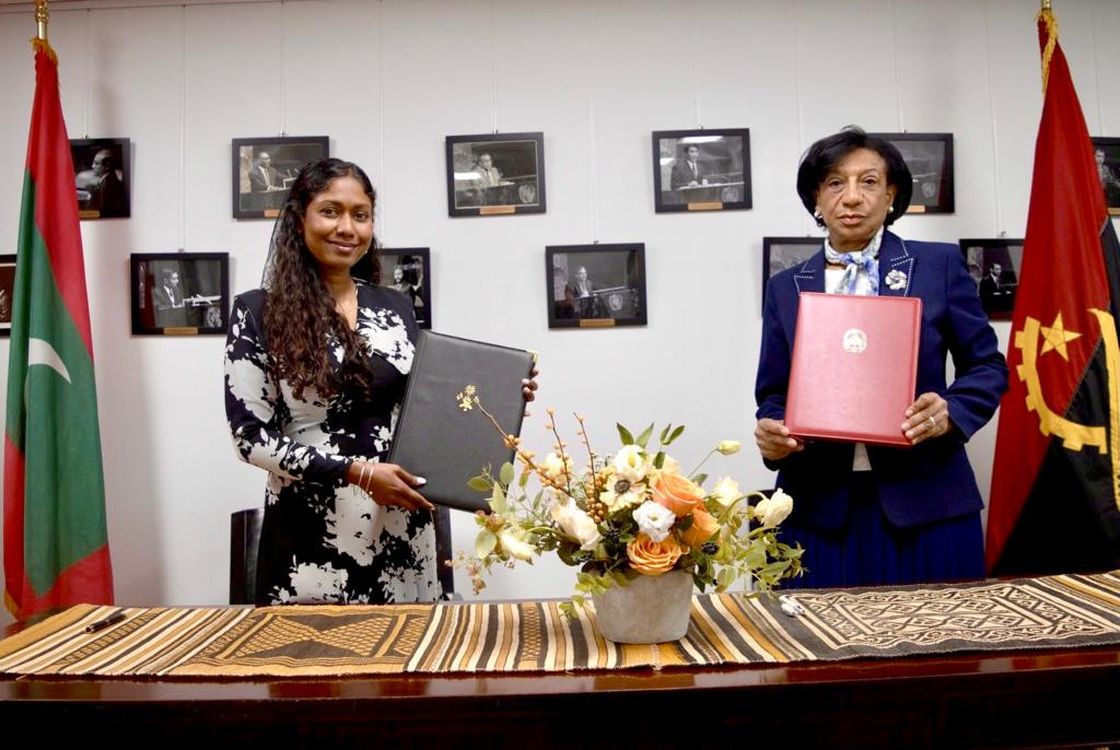 އަންގޯލާއާއިއެކު ޑިޕްލިމޭޓިކް ގުޅުން ބަދަހިކުރުމަށްފަހު ރާއްޖޭގެ ފަރާތުން އެއްބަސްވުމުގައި ސޮއި ކޮށްފައިވަނީ ޔުނައިޓެޑް ނޭޝަންސްއަށް ރާއްޖެއިން ކަނޑައަޅާފައިވާ ޕާމިނެންޓް ރެޕްރިސެންޓޭޓިވް ތިލްމީޒާ ހުސެއިންނެވެ. އަންގޯލާގެ ފަރާތުން އެއްބަސްވުމުގައި ސޮއި ކުރެއްވީ އަންގޯލާއިން އެމެރިކާއަށް ކަނޑައަޅާފައި ހުންނަވާ ޕާމިނެންޓް ރެޕްރިސެންޓޭޓިވް މާރިއާ ޑި ޖީސޫސް ޑޮސް ރީސް ފެރޭރާ އެވެ.