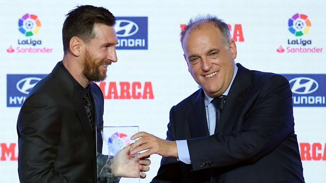 ބާސެލޯނާގެ ކެޕްޓަން ލިއޮނެލް މެސީ އާއި ލަލީގާގެ ރައީސް ހަވިއޭ ޓެބާސް