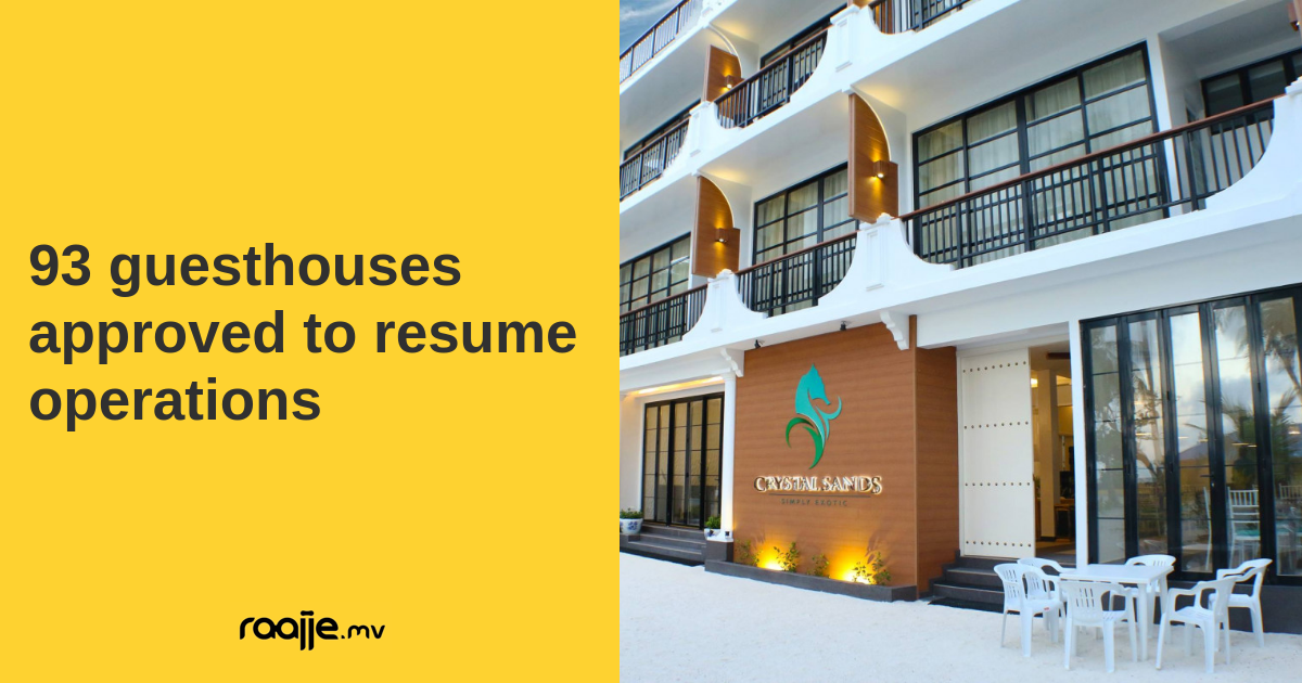 The Ministry of Tourism has approved to resume operations for 93 guesthouses outside of the greater Malé region.
