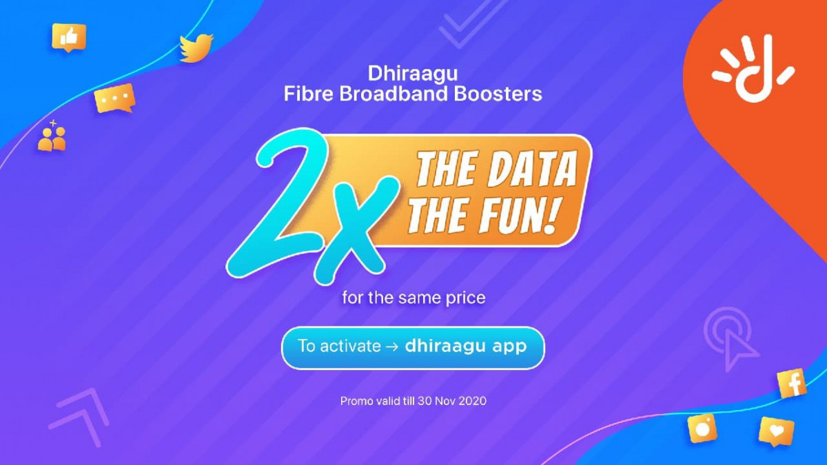 ދިރާގު ހޯމް ފިކްސްޑް ބްރޯޑް ބޭންޑް ކަސްޓަމަރުންނަށް ޚާއްސަކޮށްގެން ފިކްސްޑް ބްރޯޑް ބޭންޑް ބޫސްޓަރ ތަކުން ދެގުނަ އިތުރު ޑޭޓާ ލިބޭ ޕްރޮމޯޝަނެއް ފަށައިފި އެވެ.