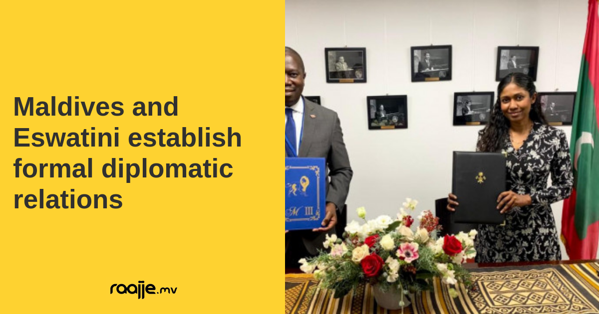 The country’s Permanent Representative to the United Nations, Thilmeeza Hussain signed the joint communique on behalf of the Maldivian government while her Eswatini counterpart, Melusi Martin Masuku signed on behalf of the African nation.