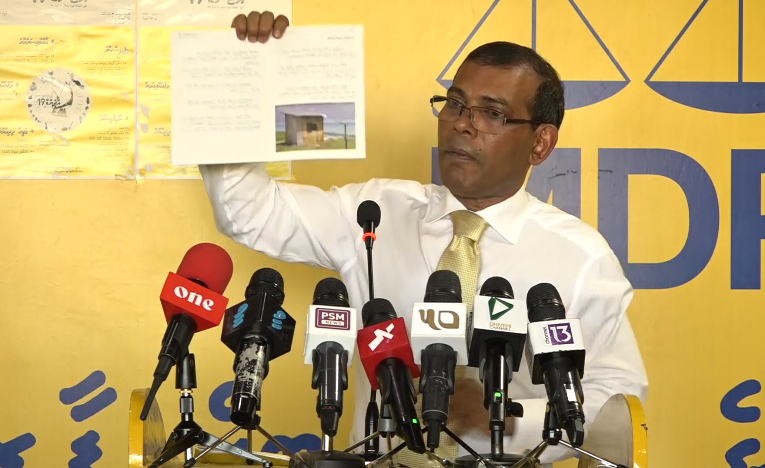 ރައްޔިތުންގެ މަޖިލިހުގެ ރައީސް، ކުރީގެ ރައީސް މުހައްމަދު ނަޝީދު ހުކުރު ދުވަހު އެމްޑީޕީ ހަރުގޭގައި އޮތް ނޫސްވެރިންގެ ބައްދަލުވުމުގައި އެޖެންޑް19 މެނިފެސްޓޯ ހިއްޕަވައިގެން