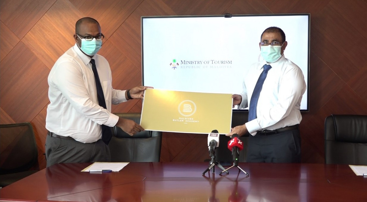 ޓޫރިޒަމް މިނިސްޓްރީ އާއި މޯލްޑިވްސް ބަޓްލަރ އެކަޑަމީއާ ދެމެދު ބަޓްލަރުން ތަމްރީނުކުރުމުގެ އެމްއޯޔޫގައި ސޮއިކުރި ރަސްމިއްޔާތުގެ ތެރެއިން