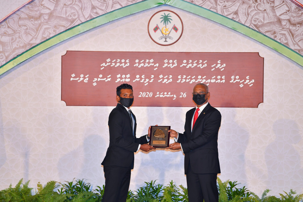 ކުޅިވަރުގެ ދާއިރާއިން ހިތްވަރުދިނުމުގެ ގައުމީ އިނާމު ފަސް ބޭފުޅަކަށް ރައީސުލްޖުމްހޫރިއްޔާ އިބްރާހީމް މުޙައްމަދު ޞާލިޙް ދެއްވައިފިއެވެ.