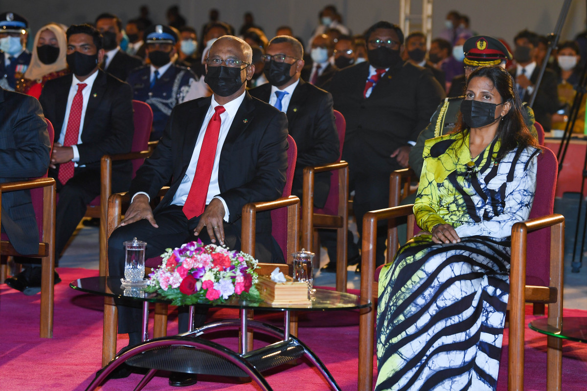 އެއްބައިވަންތަކަމުގެ ދުވަހުގެ މުނާސަބަތާއި ދިވެހި ދައުލަތުން ދެއްވާ އެކިއެކި އިނާމުތައް ދެއްވުމަށް ބޭއްވި ރަސްމިއްޔާތުގައި ރައީސްގެ ދެކަނބަލުން ބައިވެރިވެވަޑައިގަންނަވަނީ